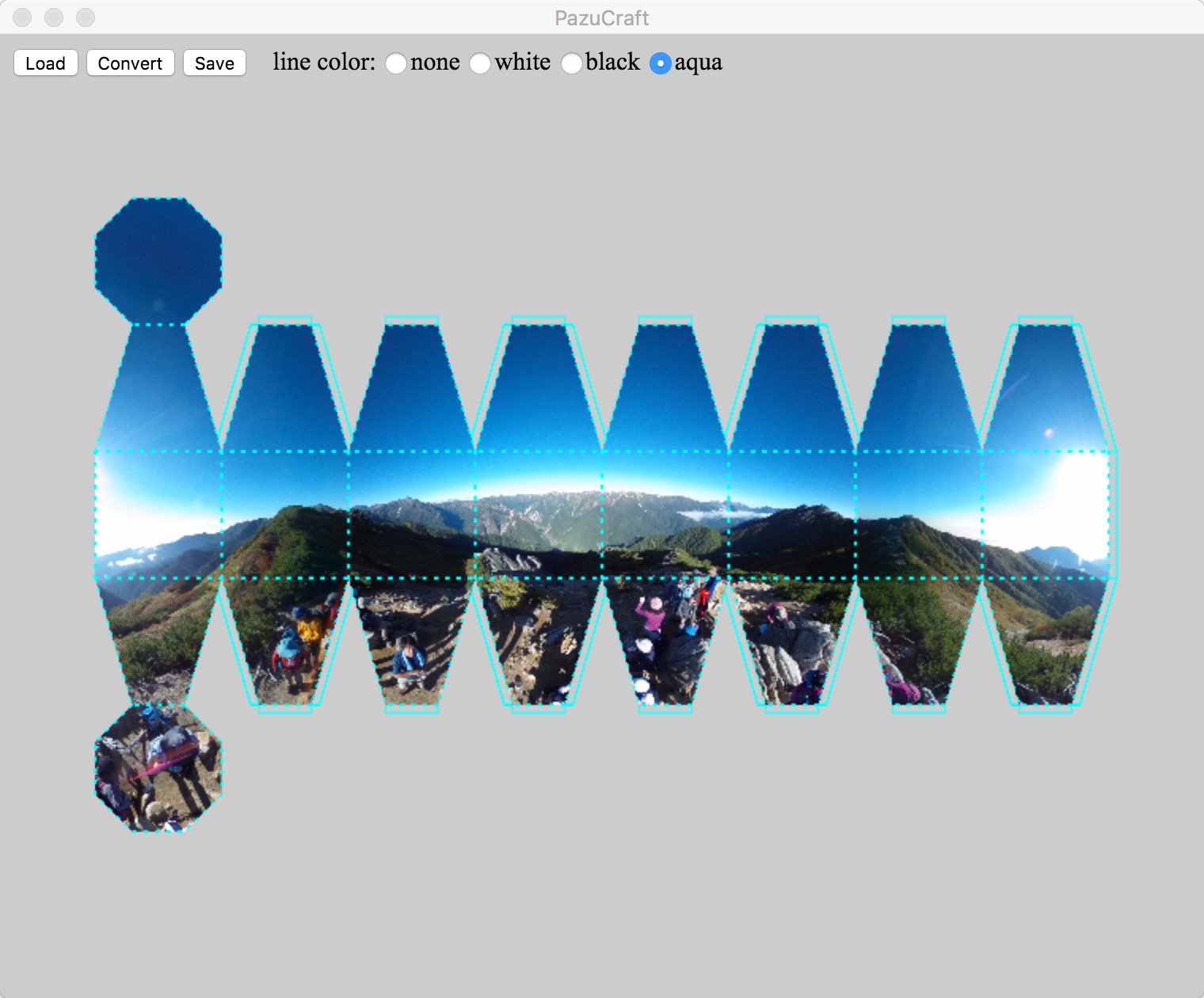 PazuCraftは最初にRuby(コマンドライン)版アプリを開発してアルゴリズムを検証。次にiOSアプリに展開したのですが、スマホ(タブレット)では如何せんマシンパワーが低く展開図の作成に数分から數十分かかっています。特に解像度が上がったTHETA Sの画像を低スペックのiPhoneで展開すると処理中にアプリが落ちていました。そこで今回PC(Win/Mac/Linux)のデスクトップアプリに作り替えました。